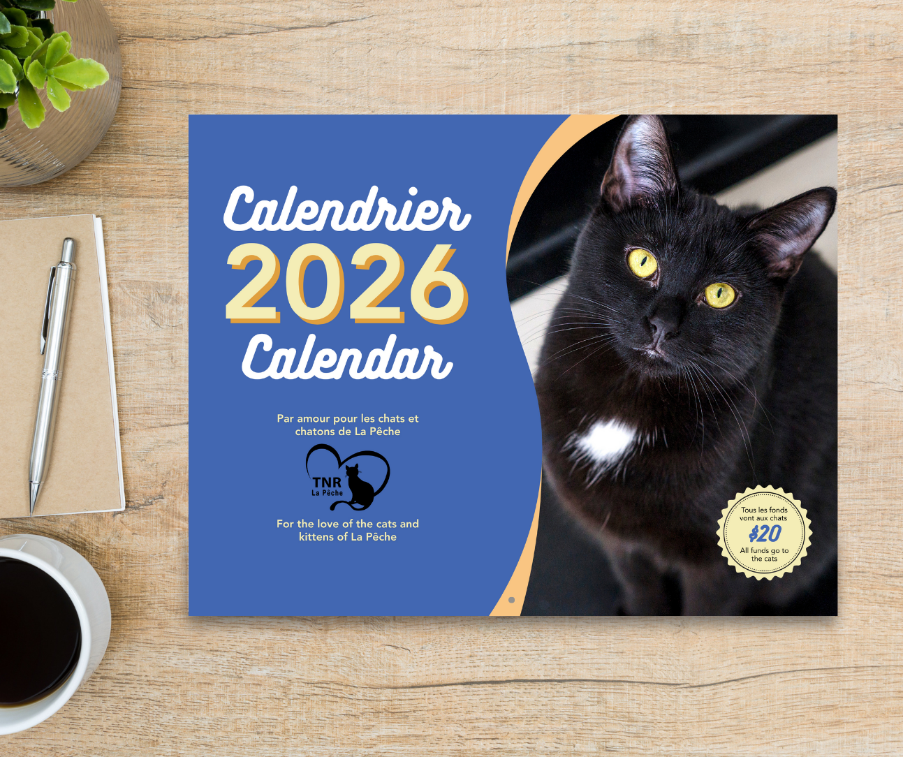 Meet the rescued cats of La Pêche in our 2026 TNR Calendar — featuring cats from our Trap-Neuter-Return program who have been adopted or are still waiting for their forever homes.